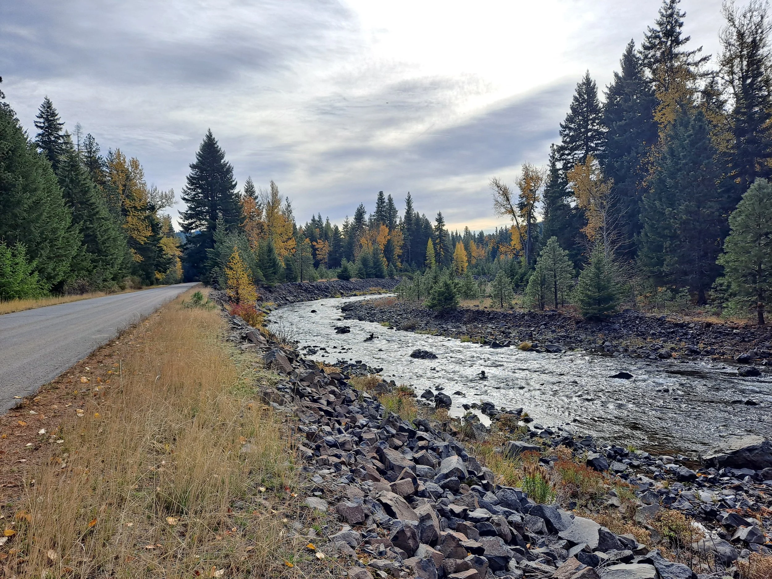 Looking downstream at the left bank levee on the Little Naches River in October 2020.